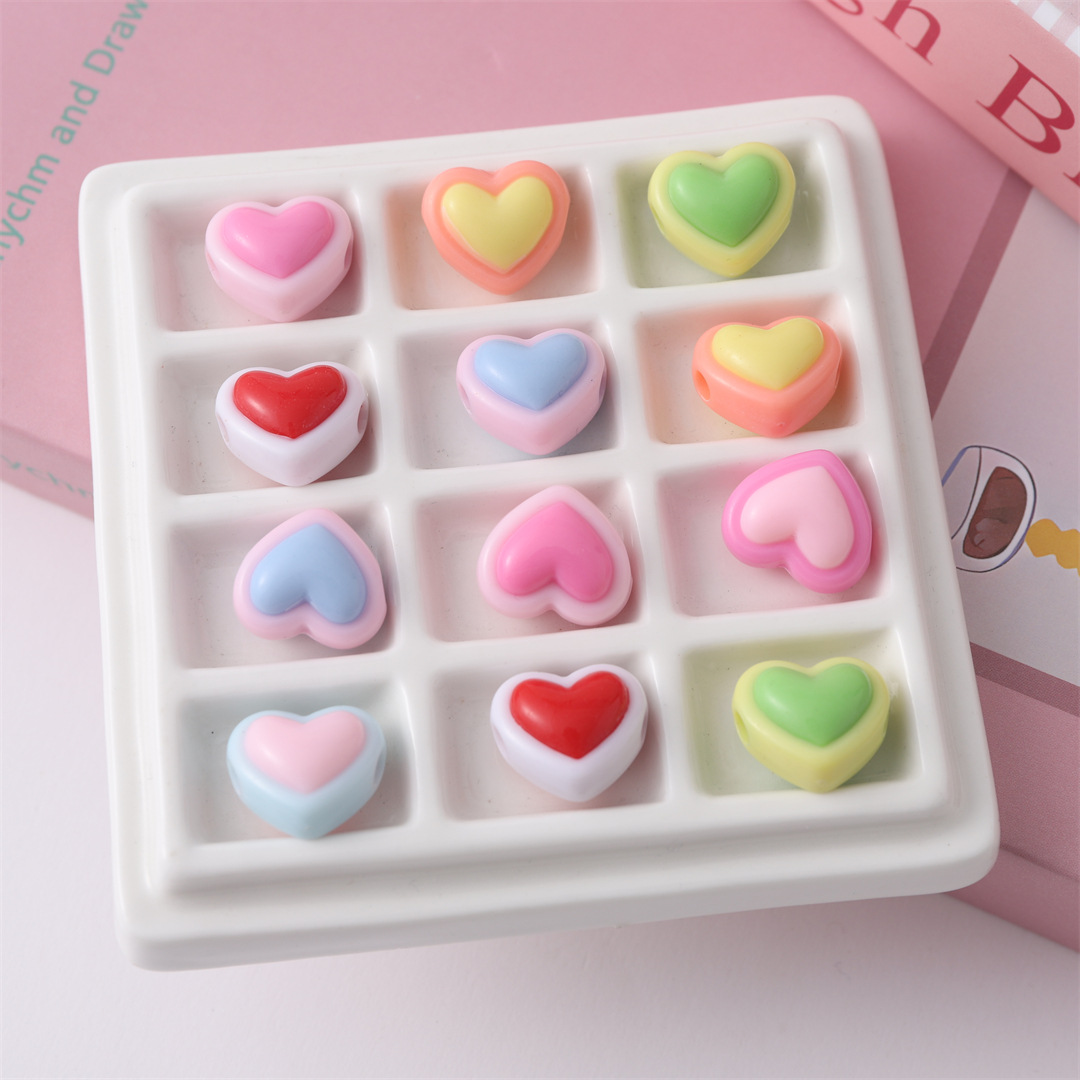 陳明2色ブロック愛珠中珠直孔2色内彩珠diy手作りブレスレットビーズアクセサリー部品