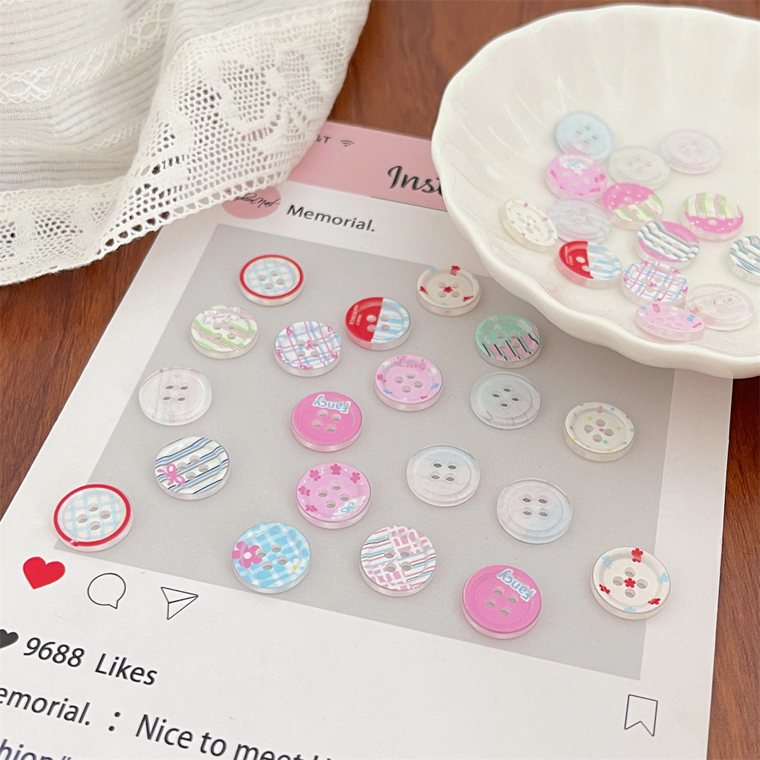 新型の格子縞の漫画のプリントの円形のボタンの春夏のdiyの服装の靴の靴下は携帯電話のカバーの部品を飾ります。