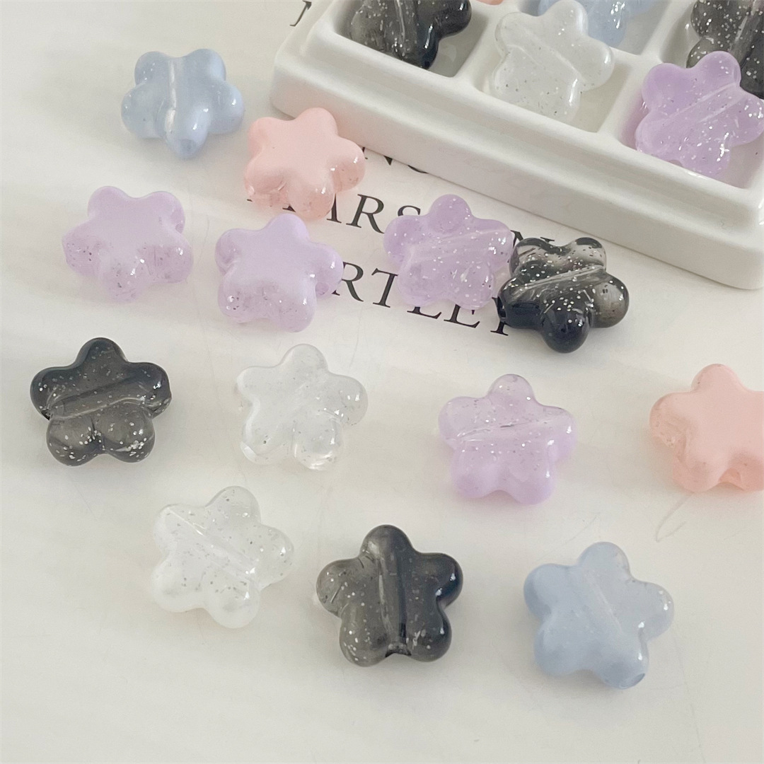 アクリル銀粉クリーム平五角星散珠児童diy手作りビーズブレスレットネックレスアクセサリー