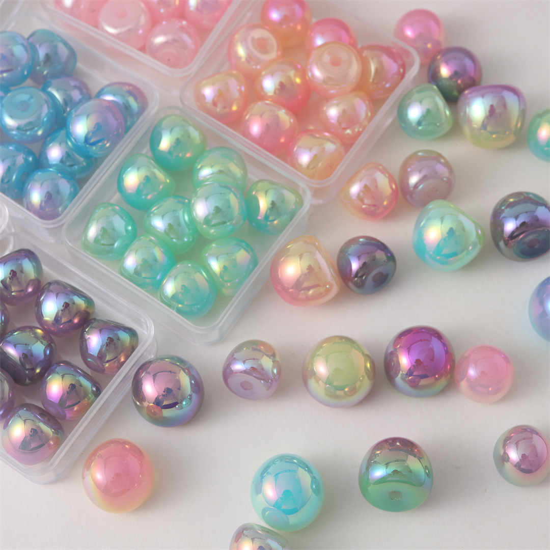 陳明アクセサリーアクリルUVメッキビーズゼリーグラデーション愛バック穴ビーズ髪飾りアクセサリー散珠