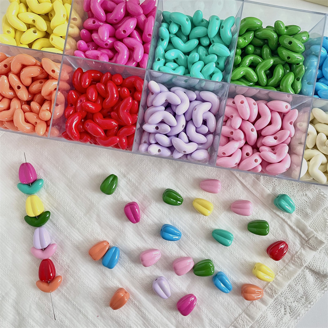 アクリルクリームキャンディー色チューリップ小花葉ビーズビーズビーズdiyブレスレット女性材料部品