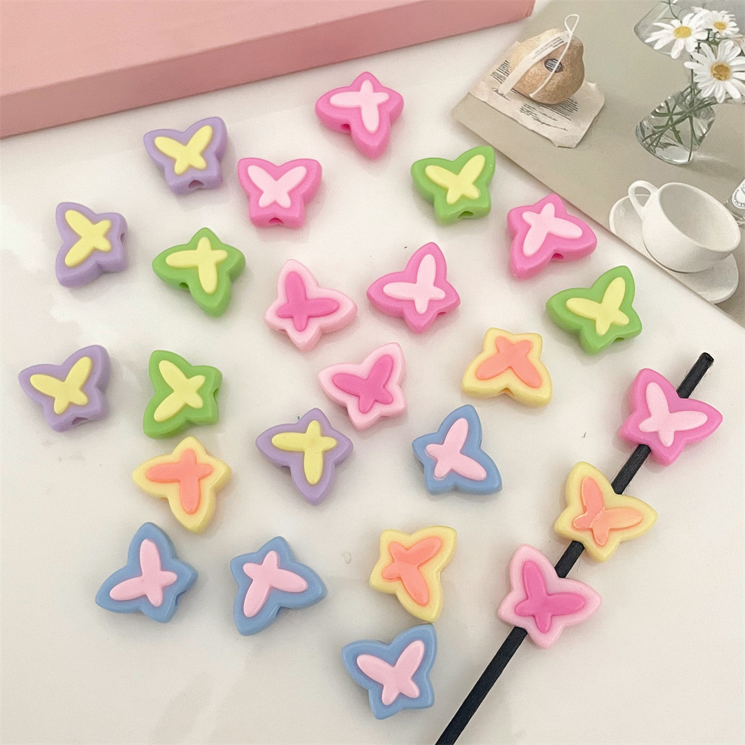 陳明工場コントラストカラー無地蝶ストレートホールルースビーズヘアアクセサリー DIY 手作り半完成ヘアロープ材料アクセサリー