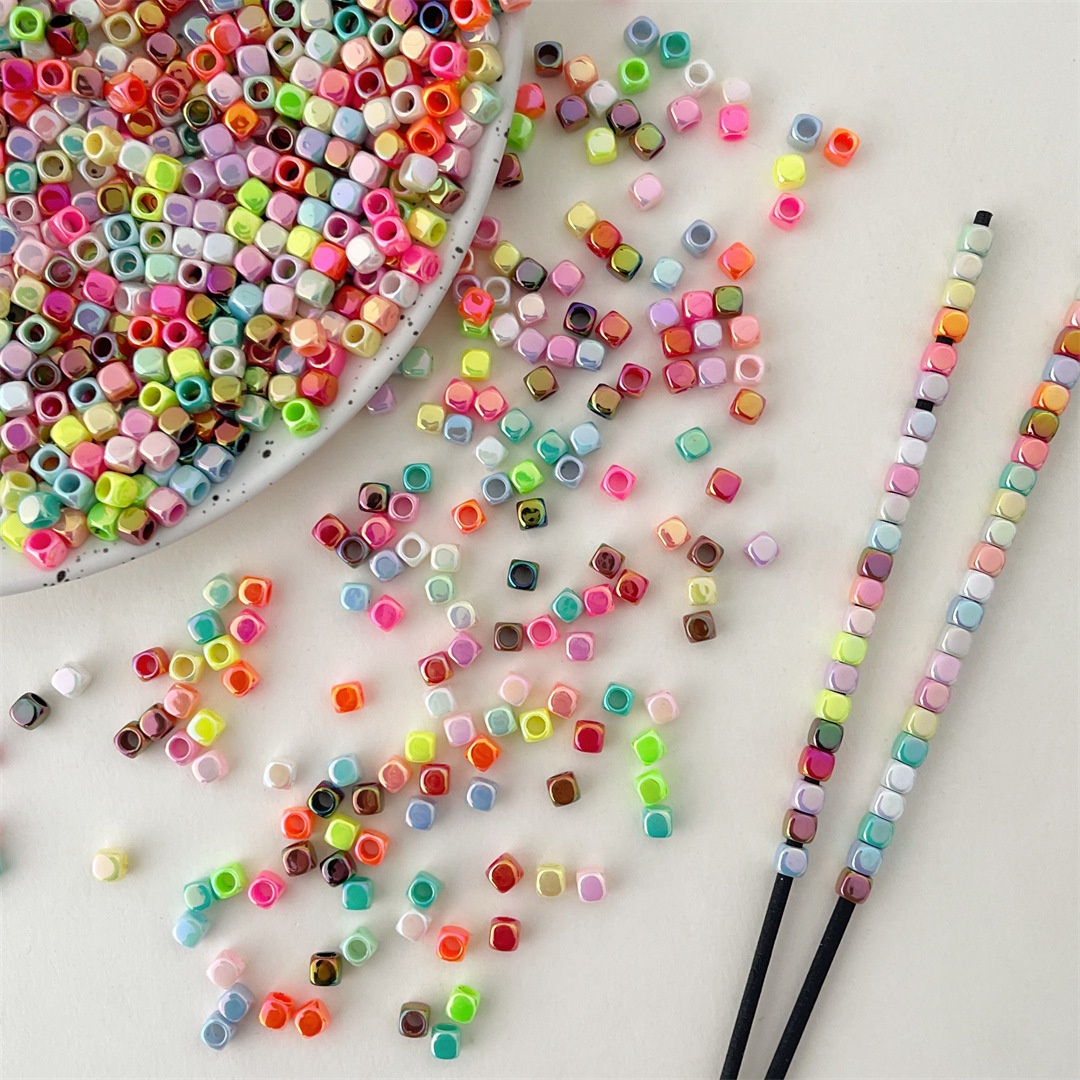 アクリルUVメッキ色正方形ビーズ実色角型大穴ビーズビーズdiy手作りビーズ材料部品