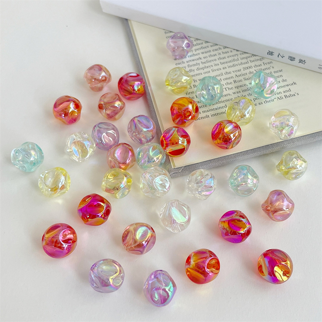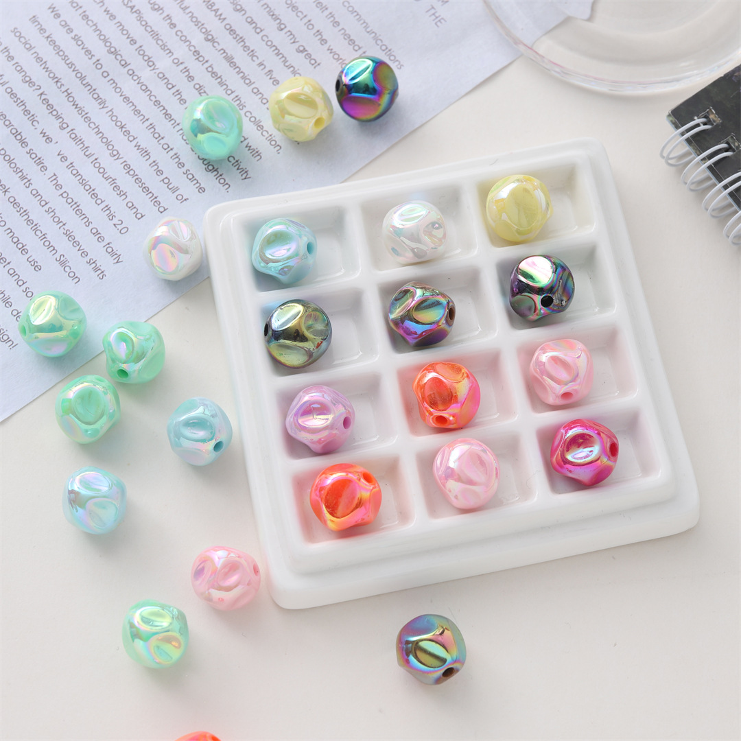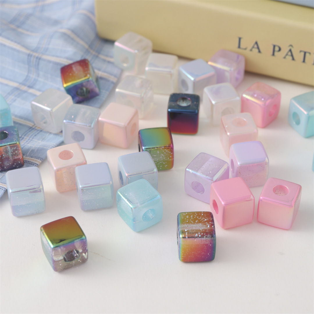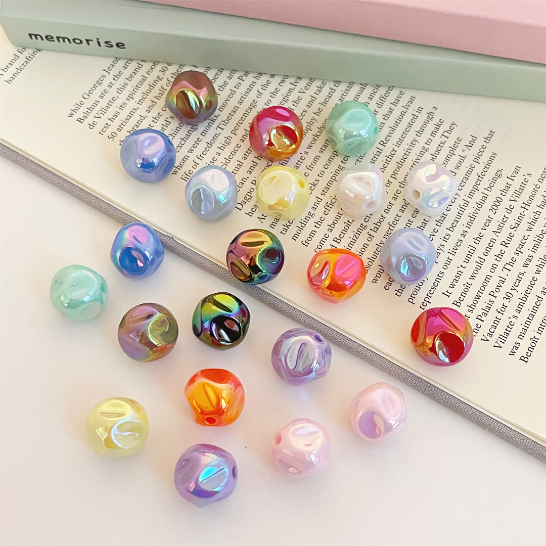 陳明アクリル充粉クリームUVメッキ14mmブロックビーズ背穴ビーズ髪飾りアクセサリー散珠