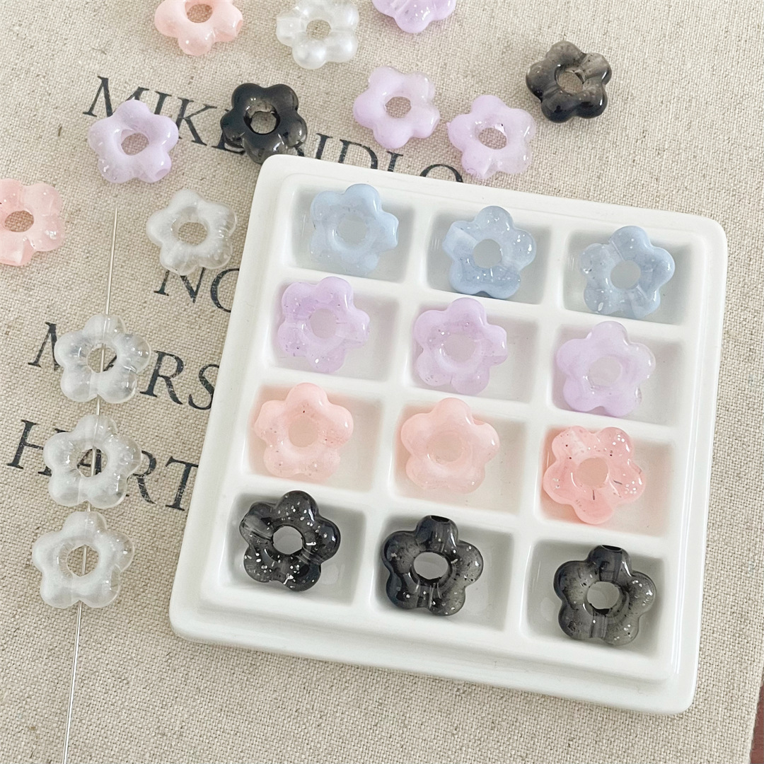 陳明アクリル銀粉クリーム透かし彫り五弁花珠ins風携帯チェーンDIY手作りビーズ材料部品