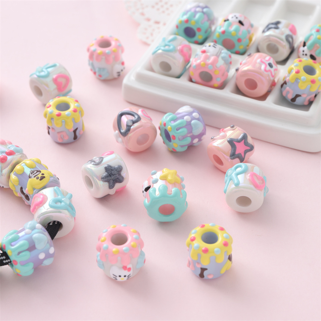 陳明アクリルマカロンカラー大穴デジタルビーズdiy手作りビーズ直穴散珠携帯チェーン部品