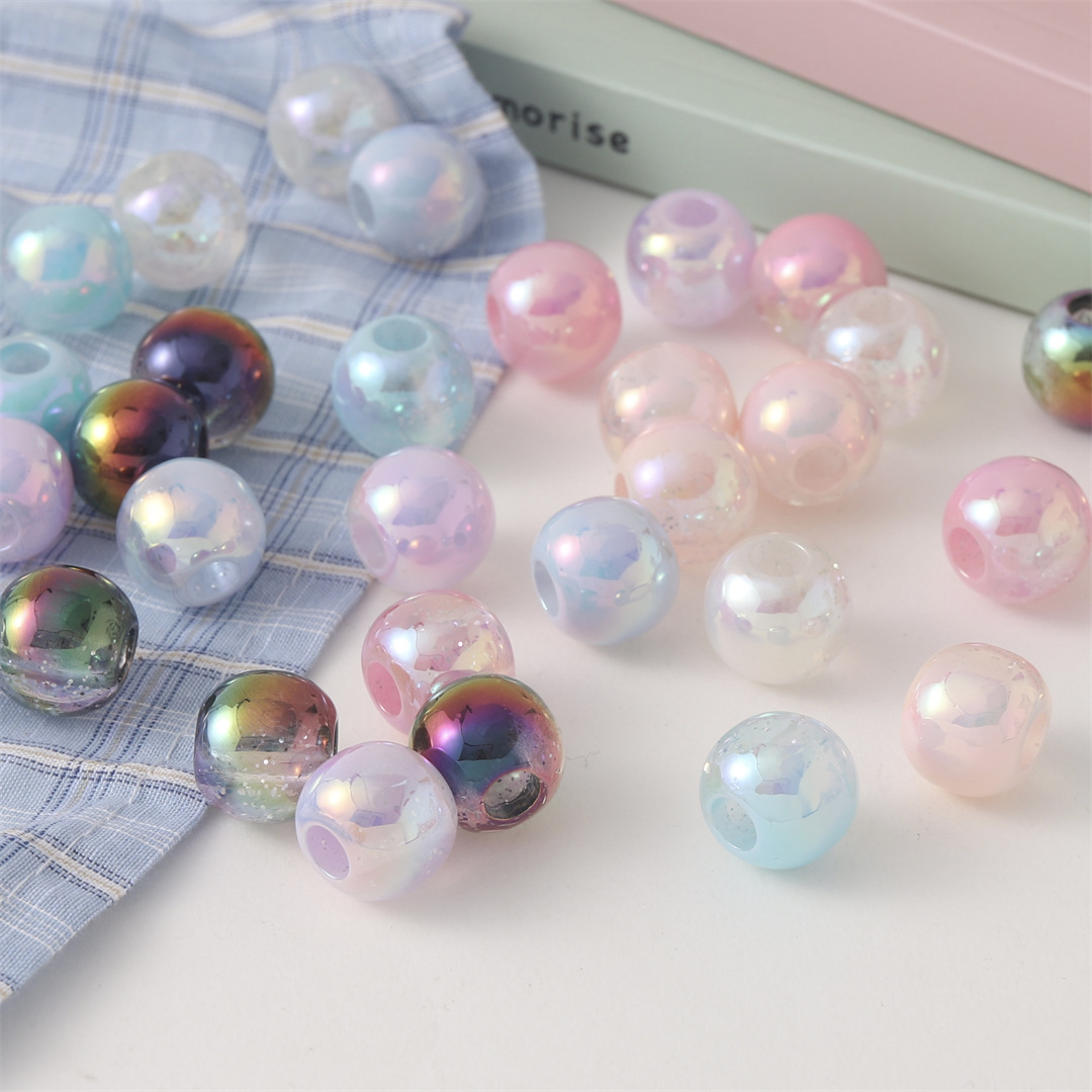 アクリル粉クリームUVメッキ18mm大穴丸珠直穴珠散珠DIYブレスレット髪飾り部品