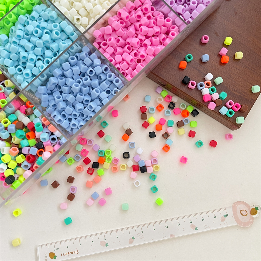 陳明アクリルカラー正方形珠実色角型大穴珠隔珠diy手作りビーズ材料部品