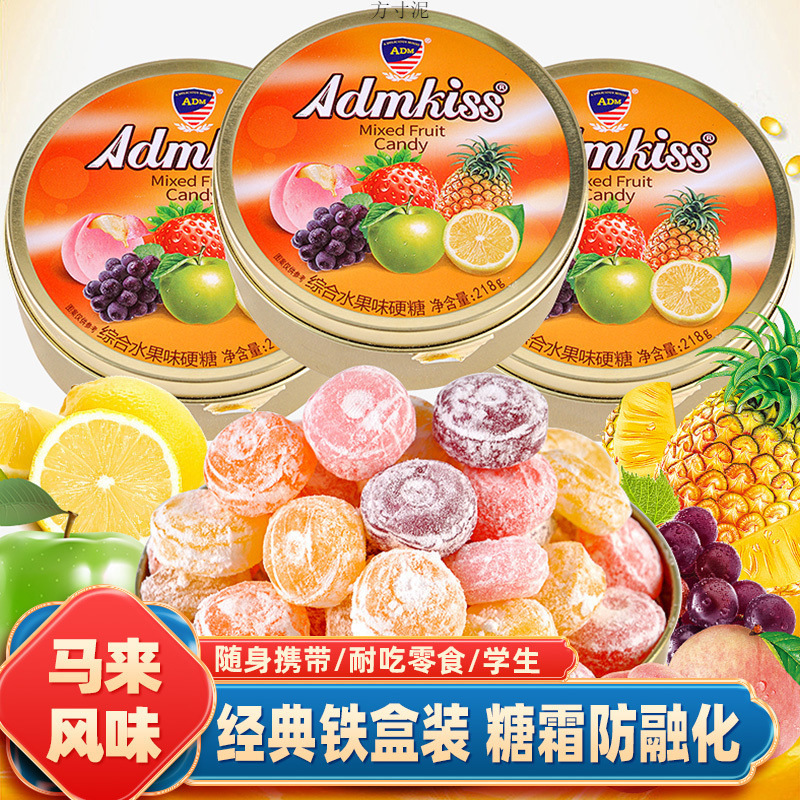 マレーシア風果物ハードキャンディー総合味218g鉄箱入り高颜値携帯キャンディー食品