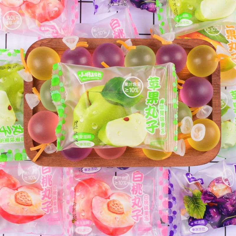 爆皮ゼリー風船ゼリー団子ネット赤スナック巨峰ブドウ多種味果物ゼリー白桃卸売り