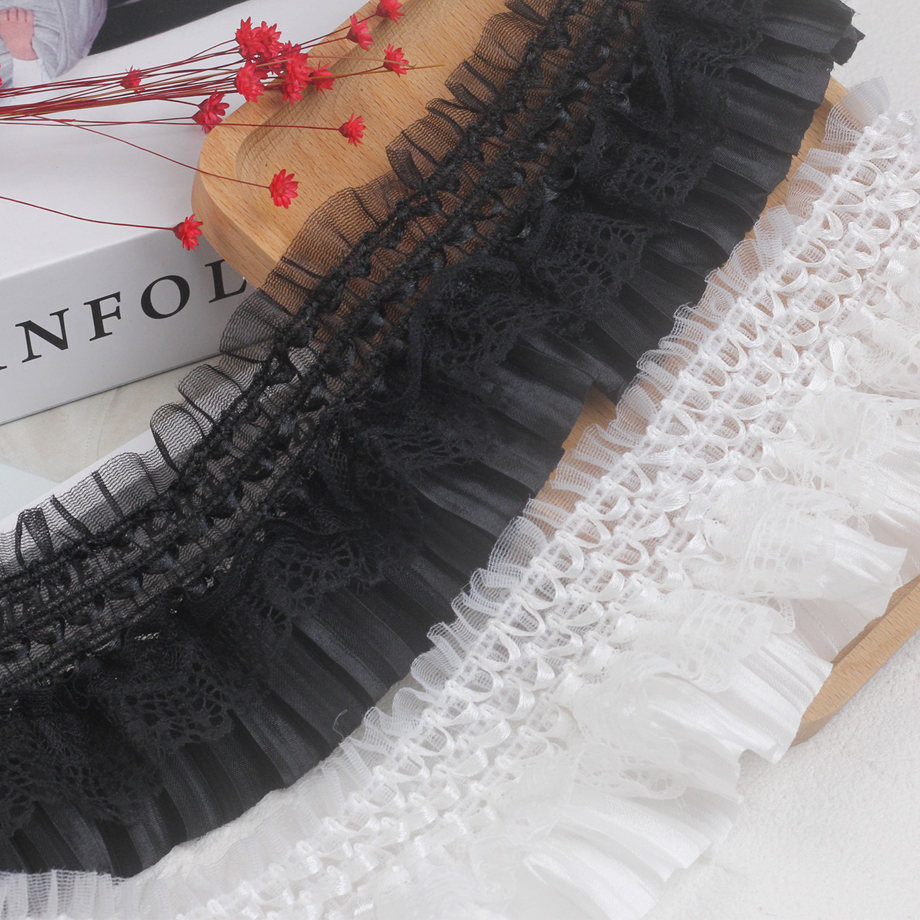 現物7cmタック二重雪紡織フック服装袖口襟元スカート部品補助材料木耳レース