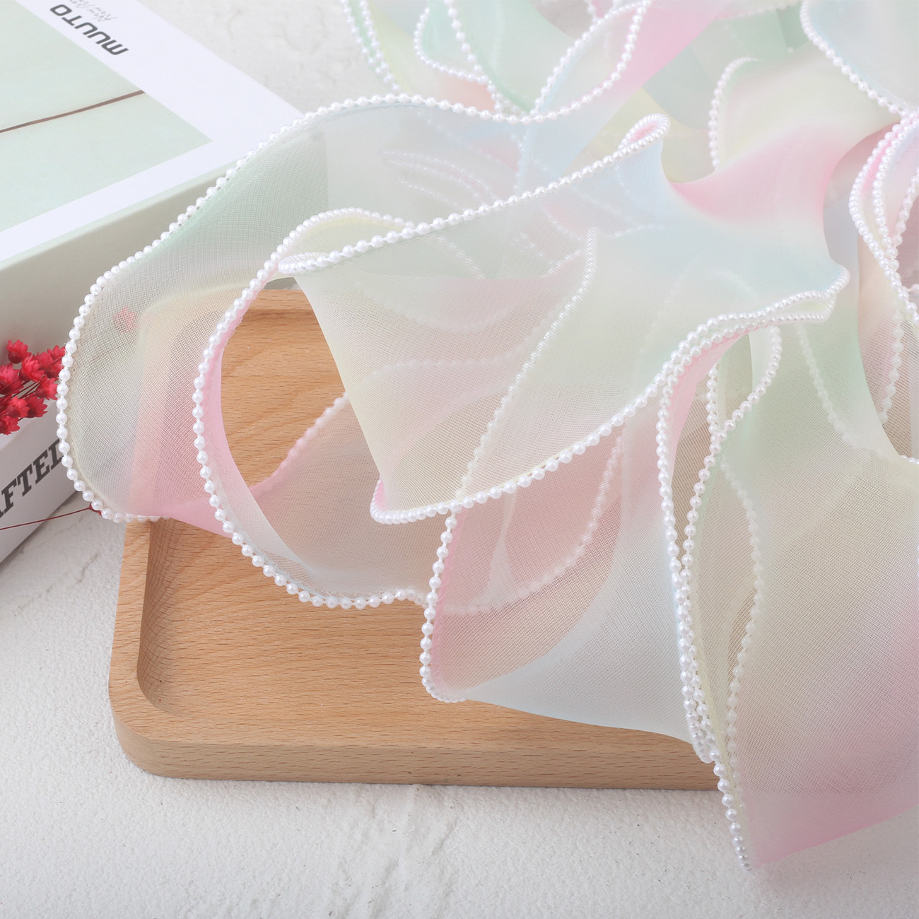 現物6cmグラデーション虹真珠魚尾糸リボンリボン髪飾り玩具包装部品リボン