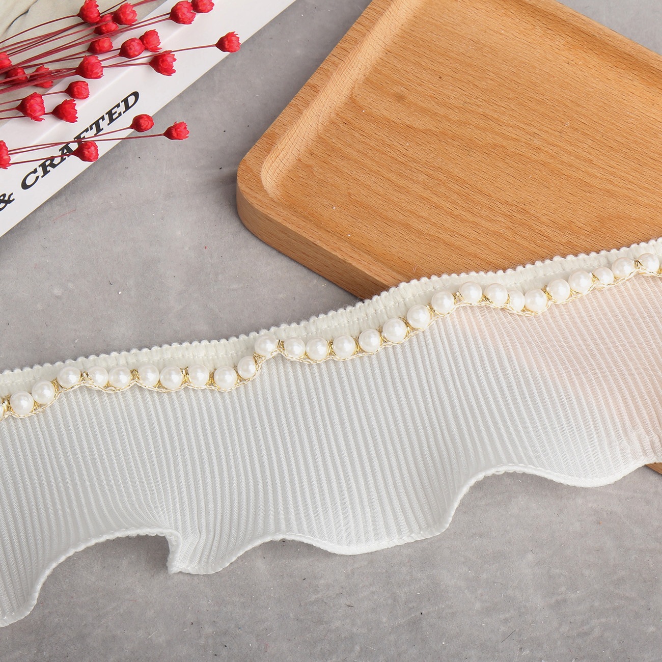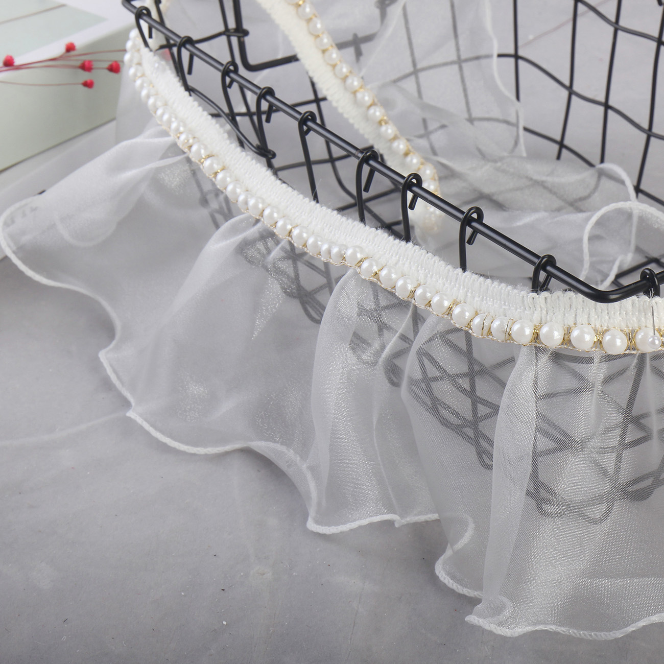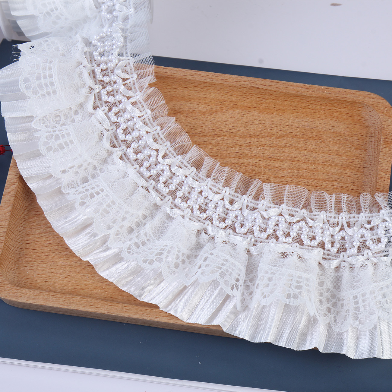 スポット8cmストレッチストレッチレース二重オルガンしわdiyビーズチェーン真珠lolita袖補助材料