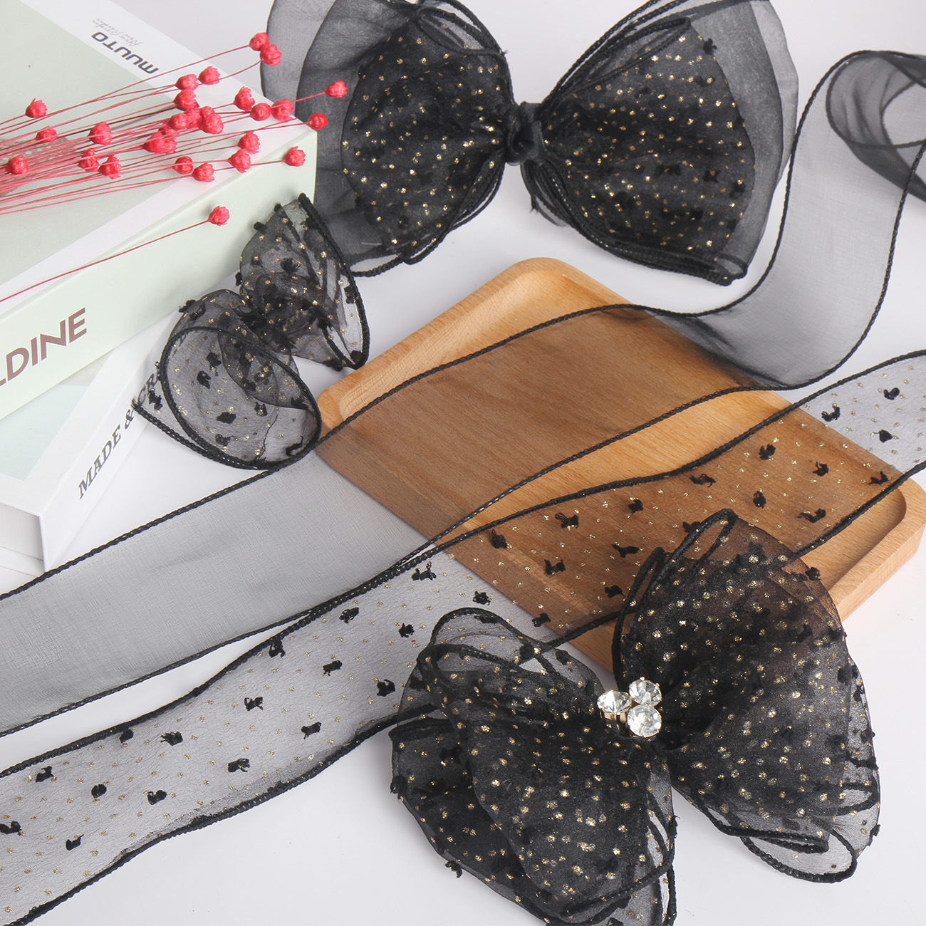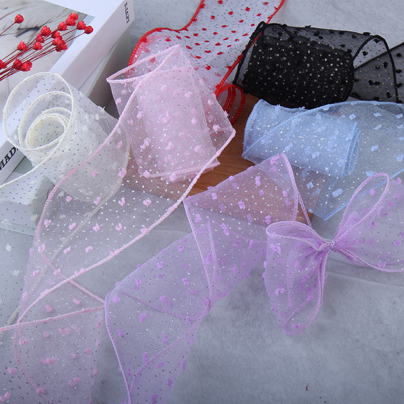 現物2.5cm水晶サテン点ドリルしわ魚尾糸リボンリボン髪飾り靴花アクセサリー材料リボン
