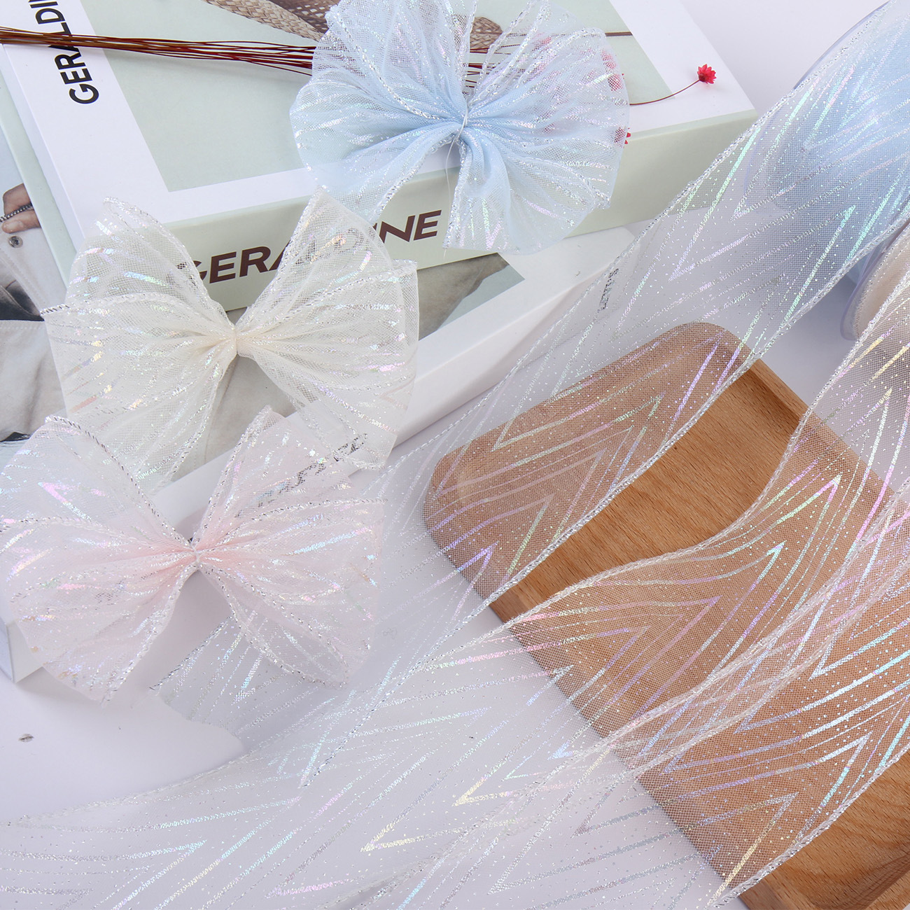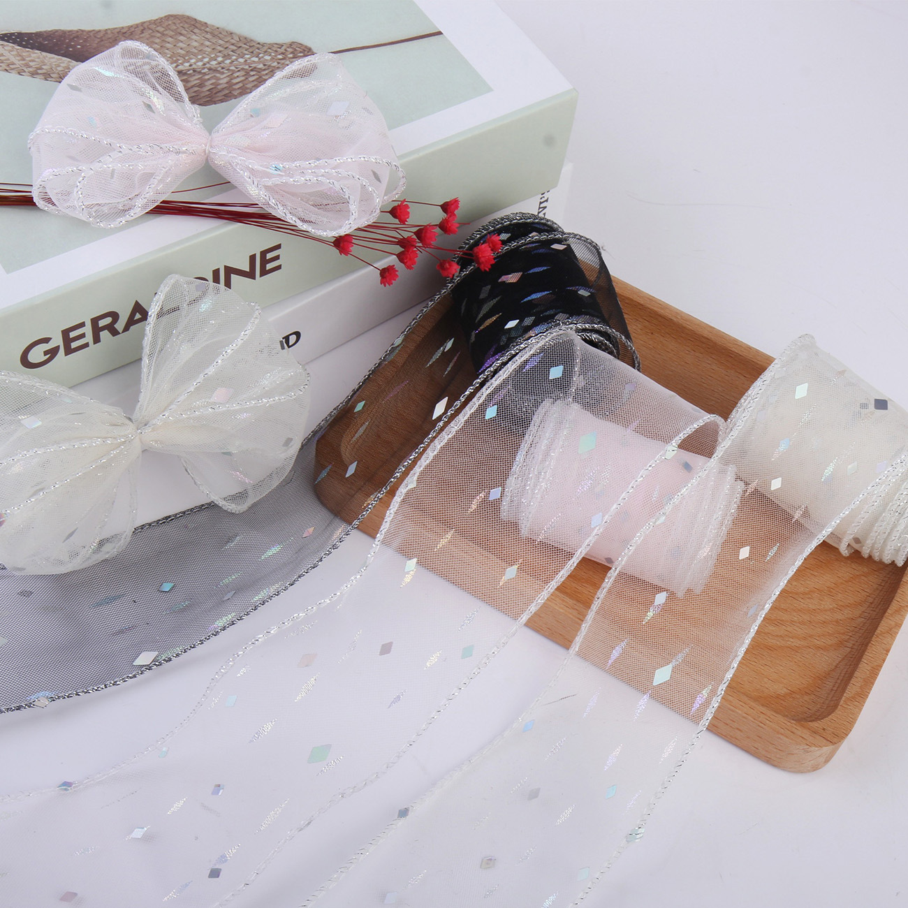 現物5cm幻彩菱形網糸拷問辺蝶結び髪飾り靴花アクセサリーリボン材料魚尾糸