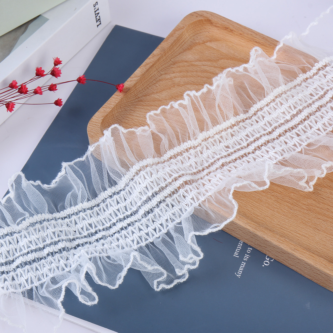 現物8cmタック網のスカートは服装の帽子の工芸のアクセサリの家の紡績のアクセサリのリボンのしわの割引のレースを並べます。