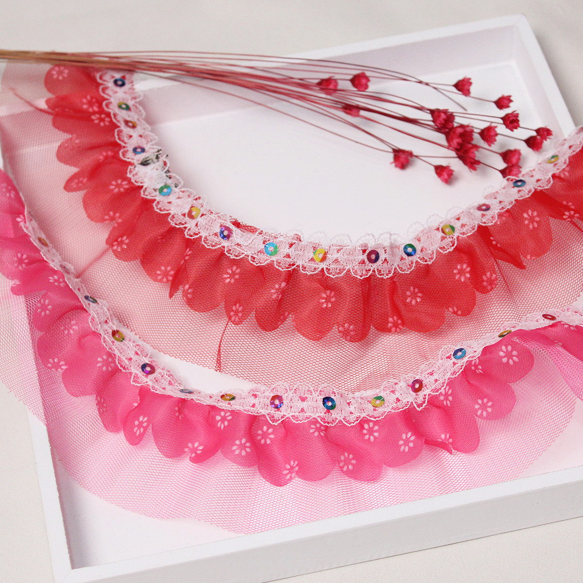 現品2cm両面ポリエステルシワ付きレース盤花ポリエステルリボンdiy服装補助材料装飾レース