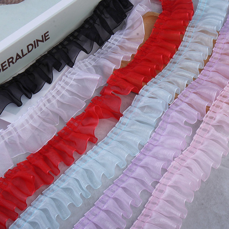 現物2.5cmポリエステルリボンしわ工芸玩具子供服木耳装飾服装部品割引レース