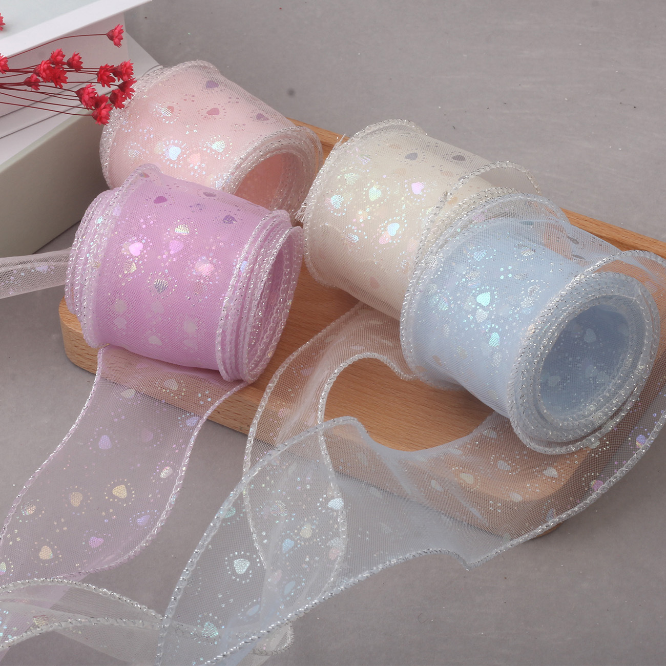 現物5cm金辺魚尾糸リボン欧根紗蝶結び花包装花靴材料リボン