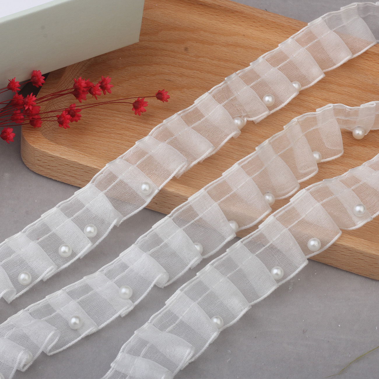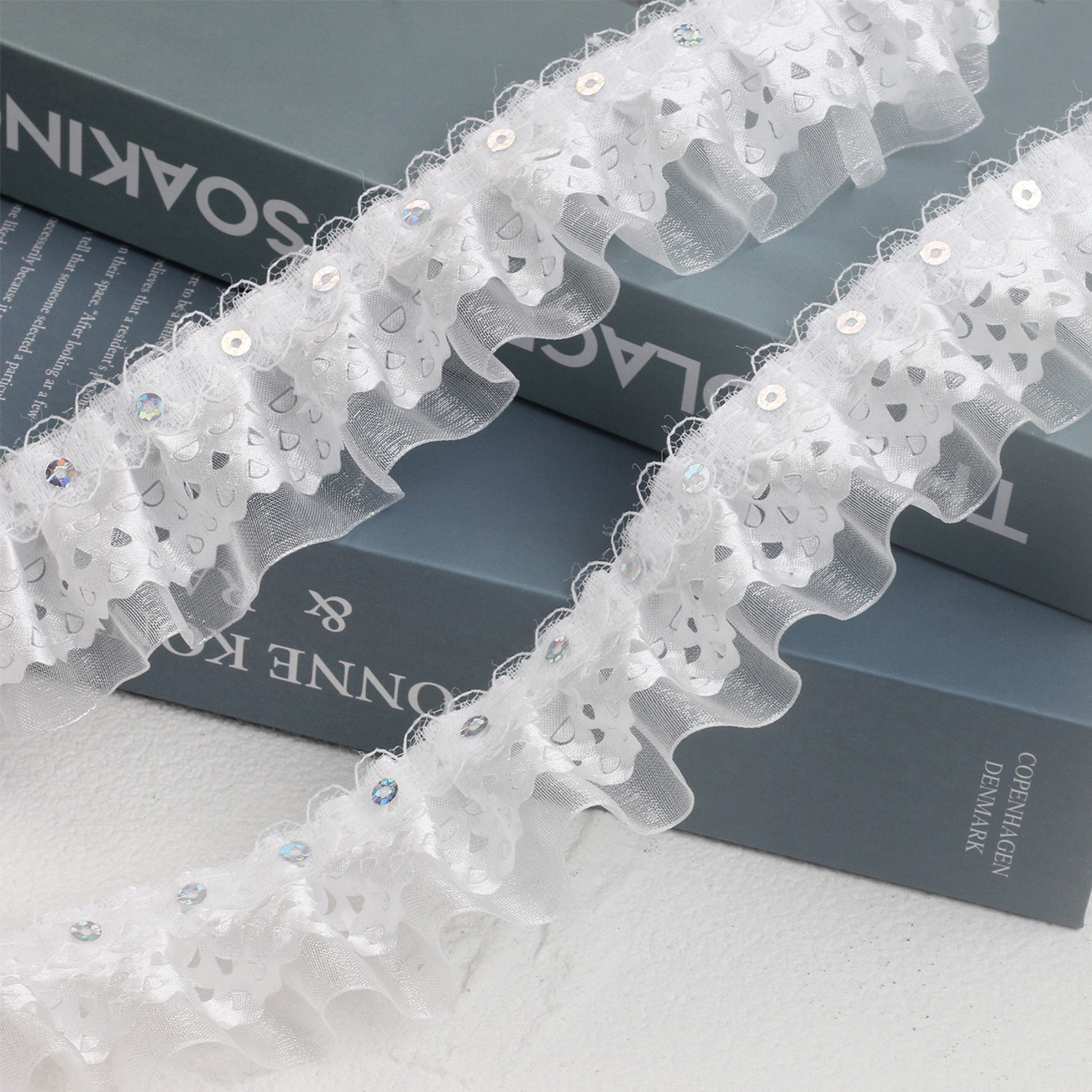 在庫あり、ビーズとプリーツが施された厚さ2.5cmの雪糸、靴、帽子、衣類、襟、スカートの裾、アクセサリー、割引レース