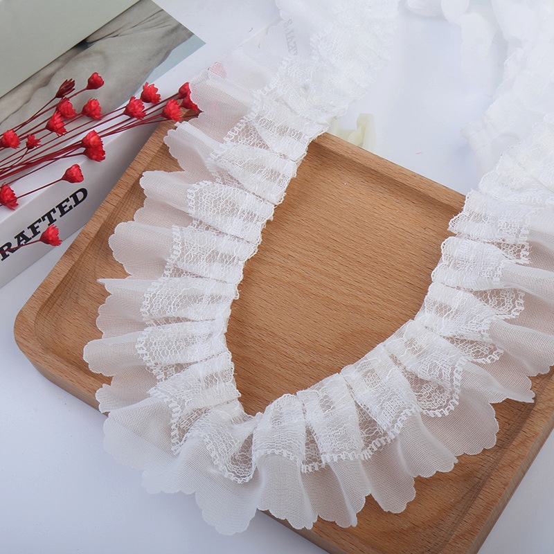 現物5cm二重エンボス雪紡織レースしわ服装補助材料DIY家紡織玩具靴帽割引レース