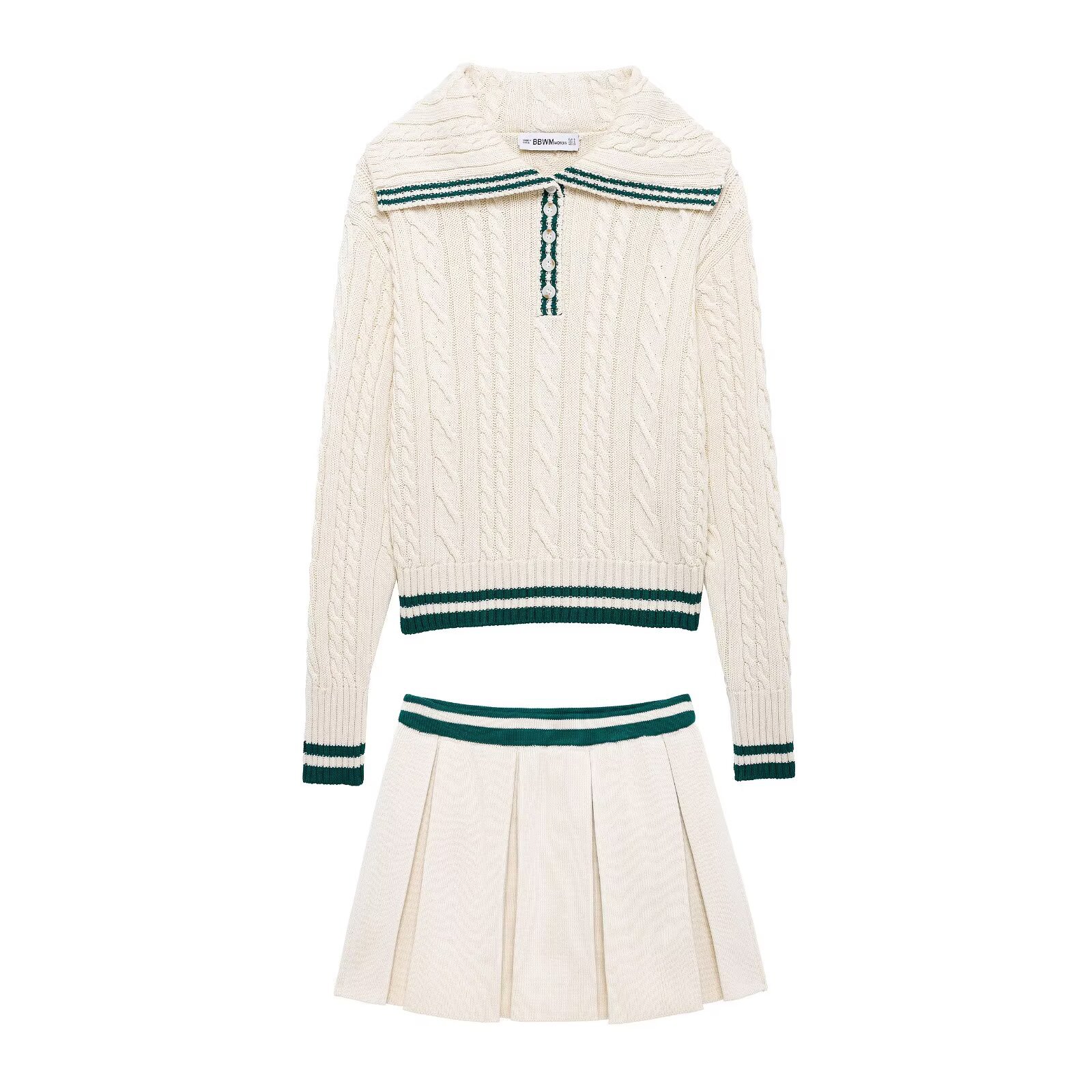 外国貿易クロスボーダー新型婦人服2025欧米新型八股編みニットミニスカートセットA36048/49