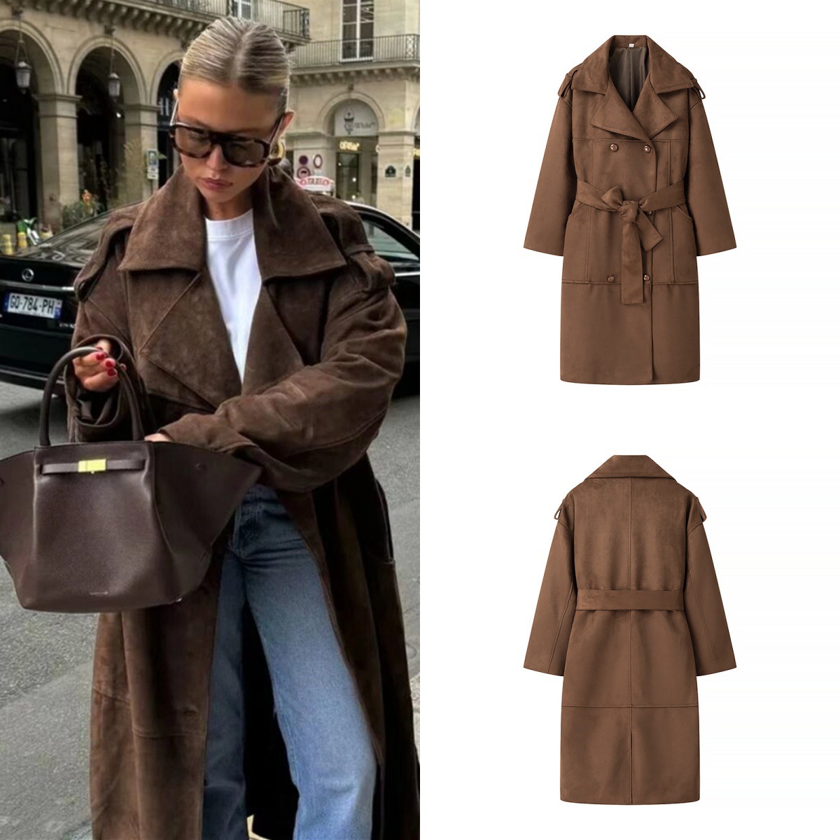 国境を越えた欧米のファッションには、スエードの長袖コートの上着2025春の新製品C92356がある