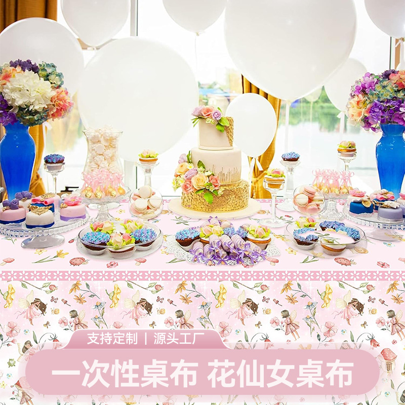 花アンドロメダ使い捨てテーブルクロス耐久性PEVAテーブルクロス表紙女の子誕生日パーティー装飾PE花色ピンク