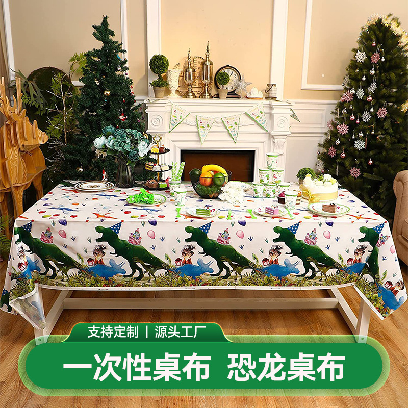 恐竜誕生日パーティーテーブルクロス使い捨てpeプラスチックテーブルクロス卸売長方形使い捨てテーブルクロステーブルマット厚い