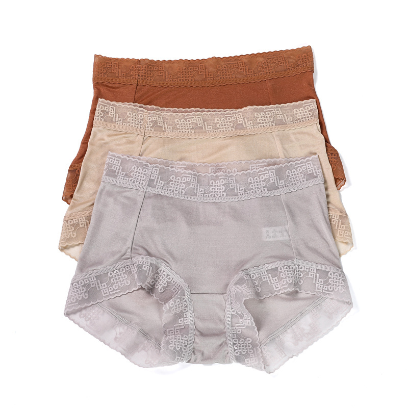 100% 绢糸パンティー女性ニットシルキーレディース中腰レースビッグサイズ平角ズボン卸売