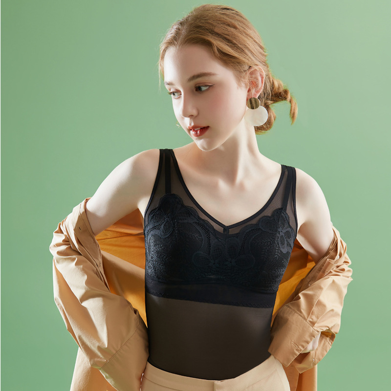 爆発的なまつげレースの短いストラップ女性vネックセクシーなノースリーブベスト