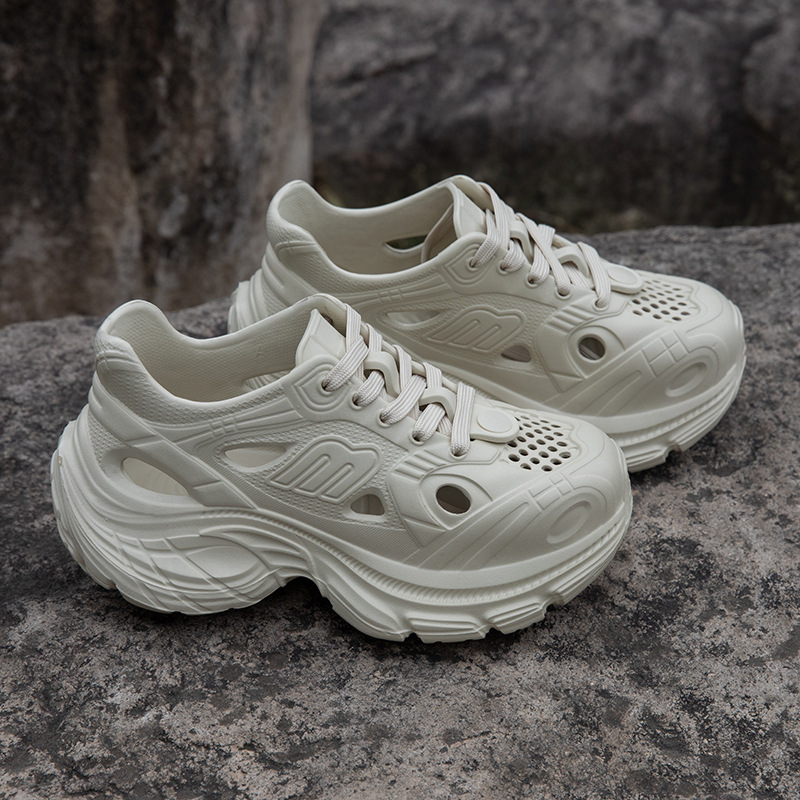 穴の靴の女性のタイプ2025新型の外は夏の厚い底を着て高くなります。