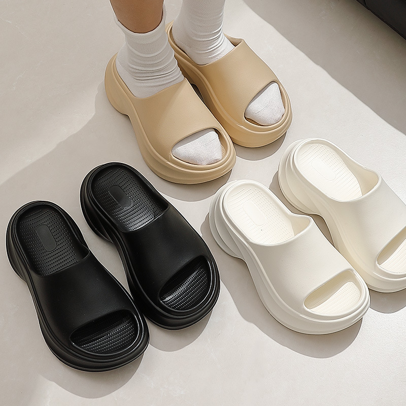女性用プラットフォームソールサンダル、夏のアウターウェア、ファッショナブルなインスタイル、女性用厚底滑り止めEVAスリッパ、卸売