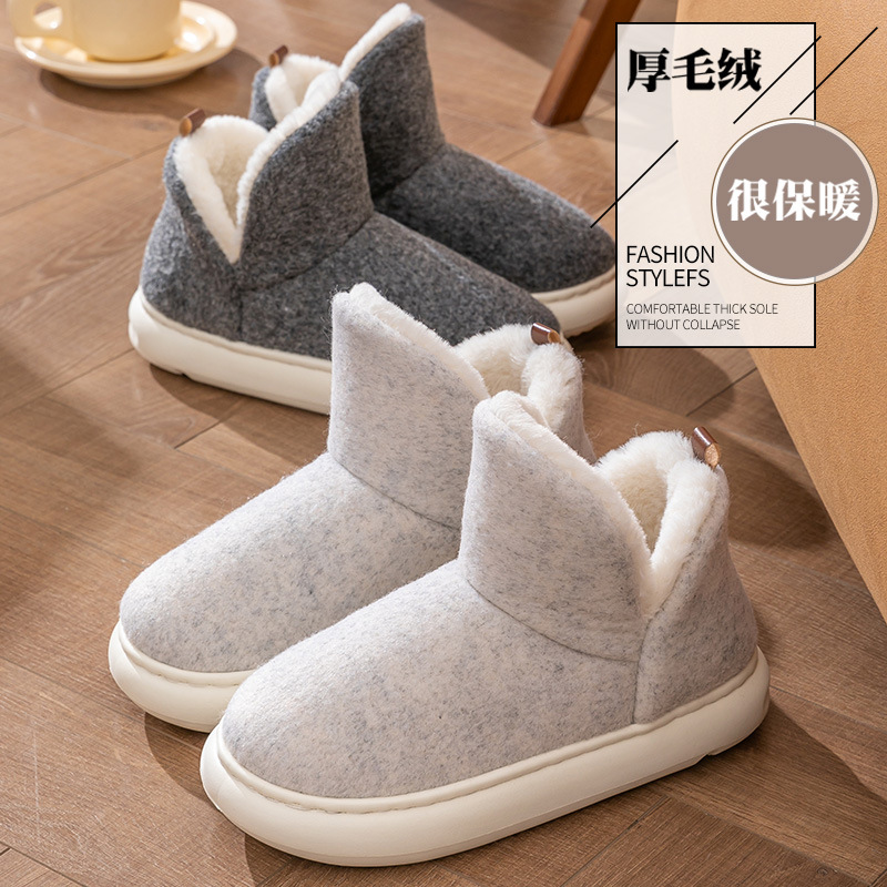 新型裏起毛綿スリッパ 女性用 ふわふわ履き心地 室内/屋外兼用 滑り止め 厚底 保温綿靴 男性/学生向け 卸売