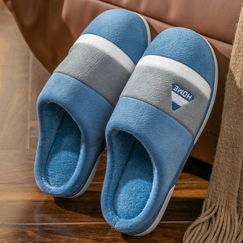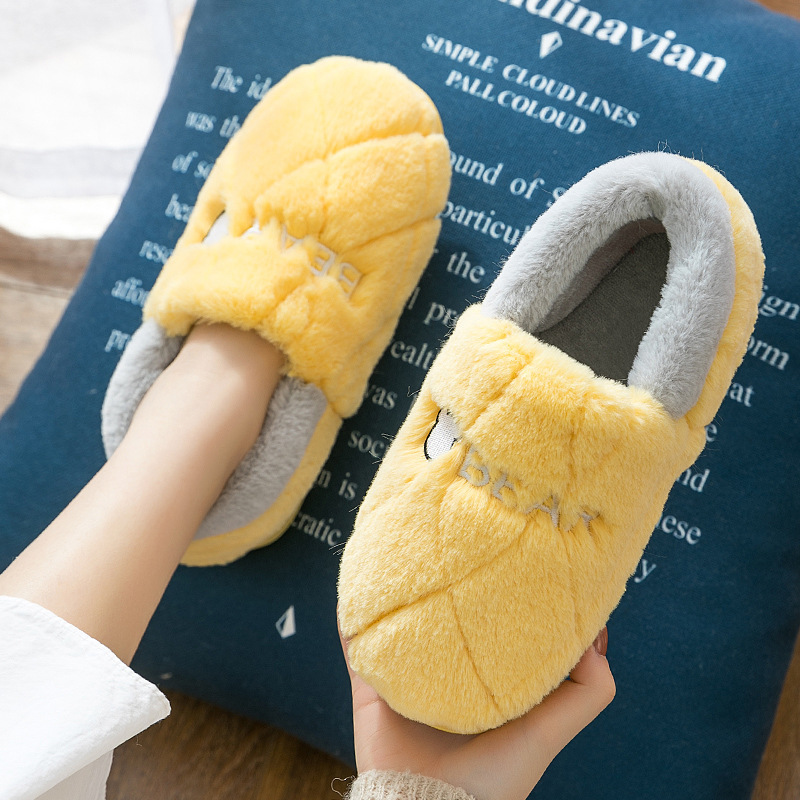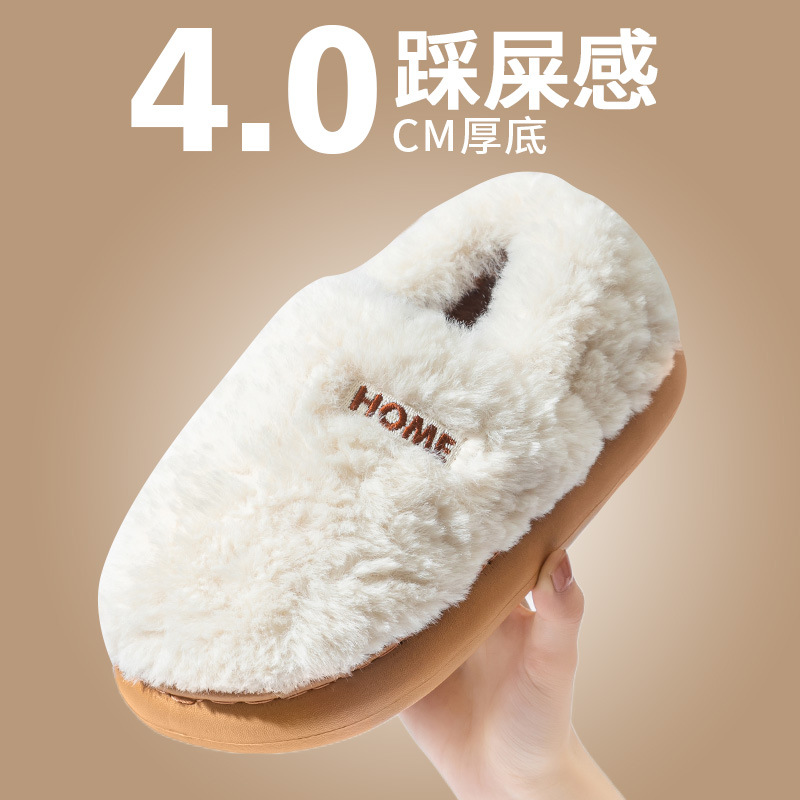 糞感ダウン綿スリッパを踏む男性は冬に家の厚い底にベルベットをつけて保温しているカップルの外に月子靴を履いている女性卸売り