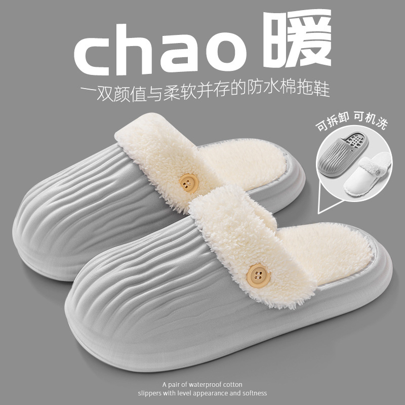 特大码棉拖鞋男士冬季室内居家居保暖外穿防滑情侣加绒拖鞋女批发