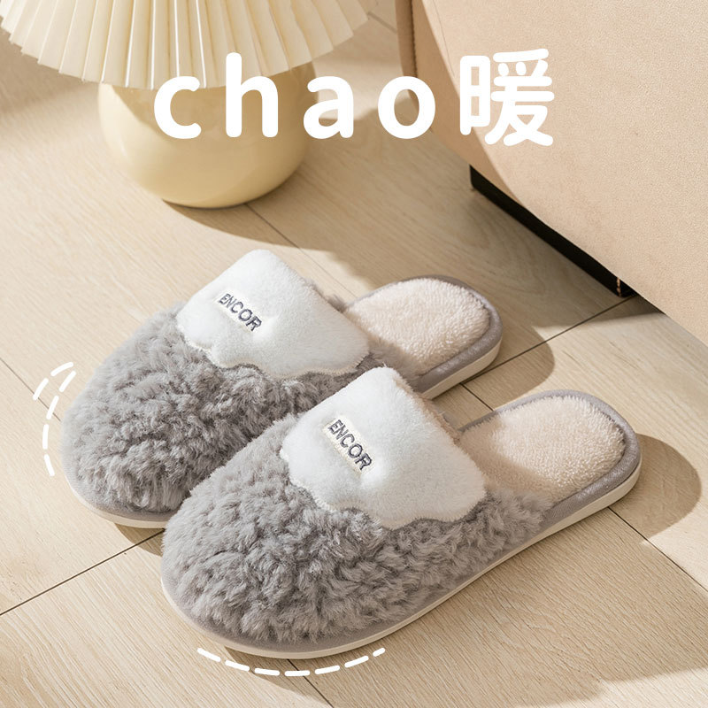 綿のスリッパの女性の冬2023新型のカップルの室内の家庭用の滑り止めのぬいぐるみの保温毛の男性の家庭用の毛のスリッパ