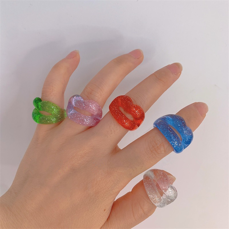 2024新しい欧米のかわいいフラッシュピンクの唇の指輪の樹脂の指輪のシンプルな個性の指輪