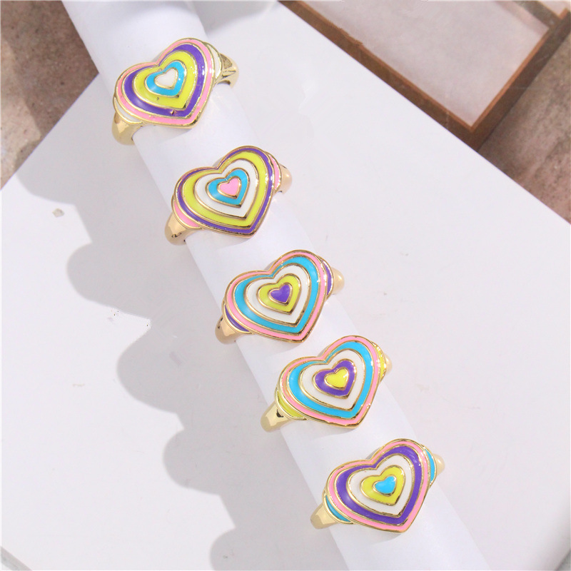 2021新欧米ファッションins風カラー愛滴油指輪シンプル個性小愛指輪銅メッキ
