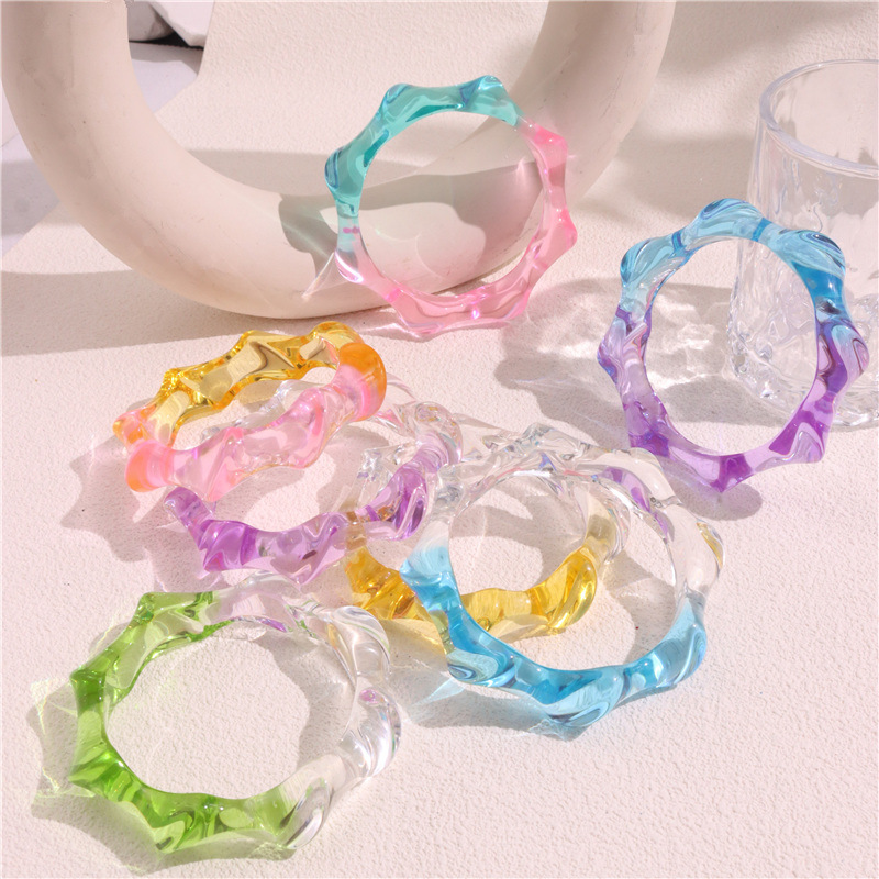 2024新型欧米オープンリング樹脂カラーブレスレット不規則シンプル幾何型透明樹脂ブレスレット