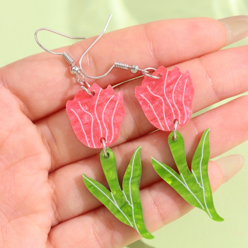 INSと同じチューリップフラワーアクリルイヤリング、甘くて新鮮で光沢のあるフラワーデザインのイヤリング