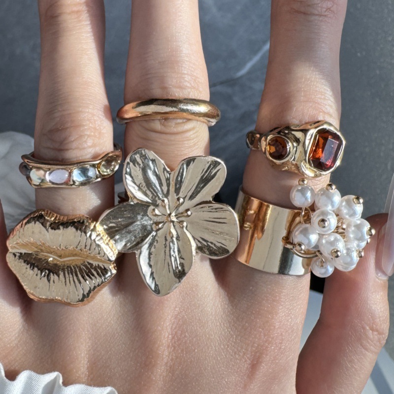欧米の大衆デザイン多色レトロファッション指輪カラー樹脂気質指輪女性指輪セット6点セット
