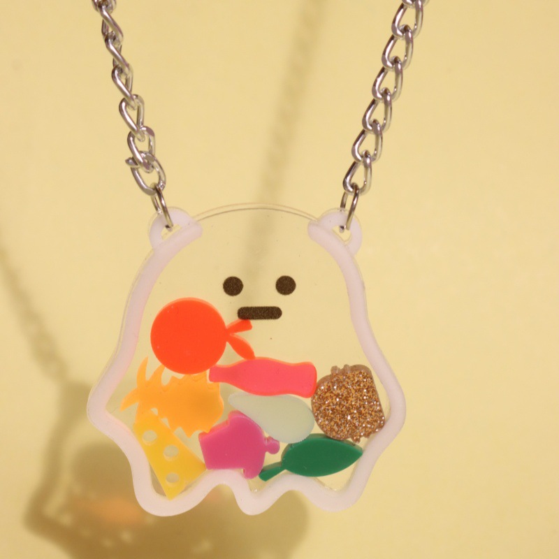 新しいかわいいアニメ趣味のロック音楽二重アクリル透明ベアーペンダントネックレス