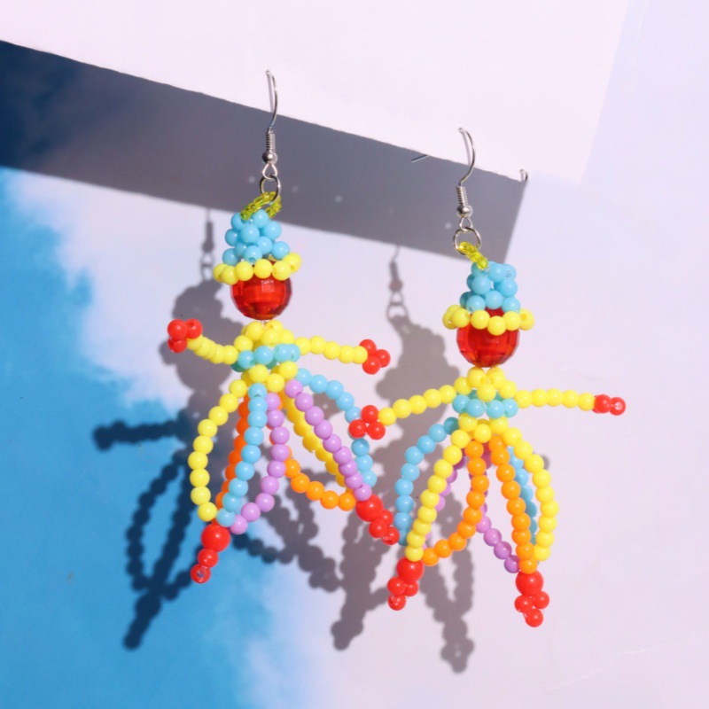 欧米国境を越えた手織りカラービーズ道化師イヤリングネックレス創意アニメ手作りビーズ立体アクセサリー