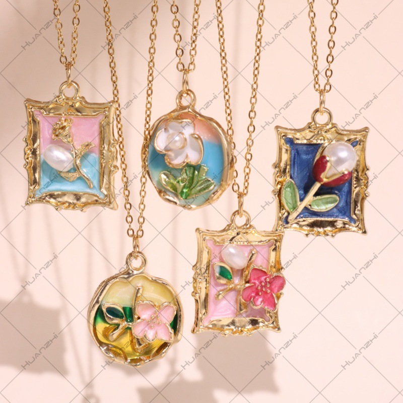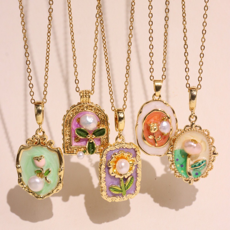 フランスのレトロなモネの花園の油絵の風の立体の真珠のネックレスの油絵のシリーズの夏の新商品の小さい清新な首のチェーン