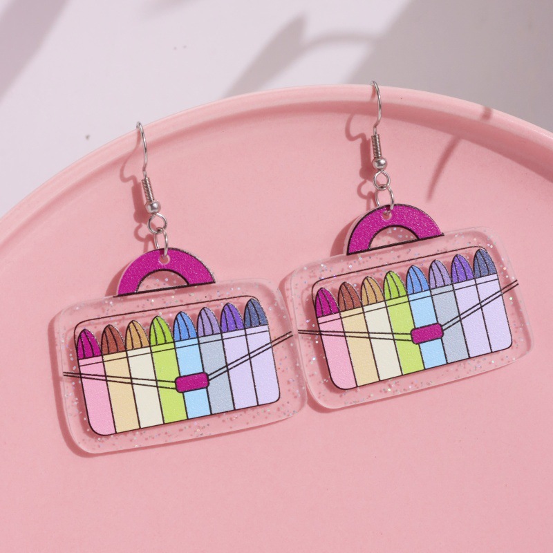 新商品趣味プリントピアスイヤリングファッション個性カラー水彩ペンイヤリングアクセサリー女性