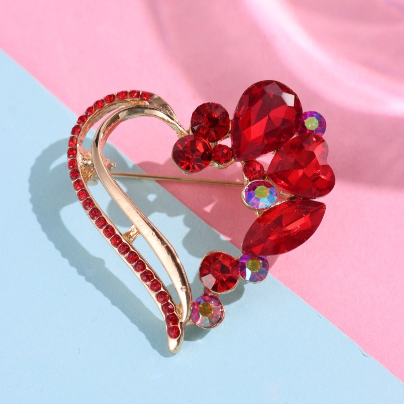 クリスタルハート形のダイヤモンドブローチファッションデザイン日韓水晶愛胸花気質スーツシャツピン卸売り