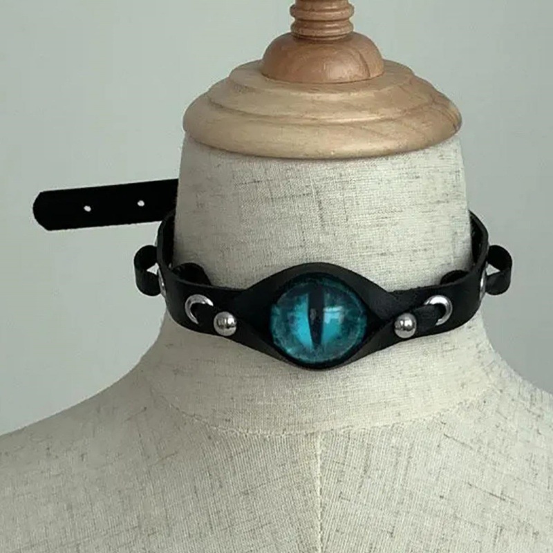 Y2Kギャル異瞳ネックレスレディースチョーカーネックチェーンゴシックパンクダークヤビ文化瞳色レザー首輪