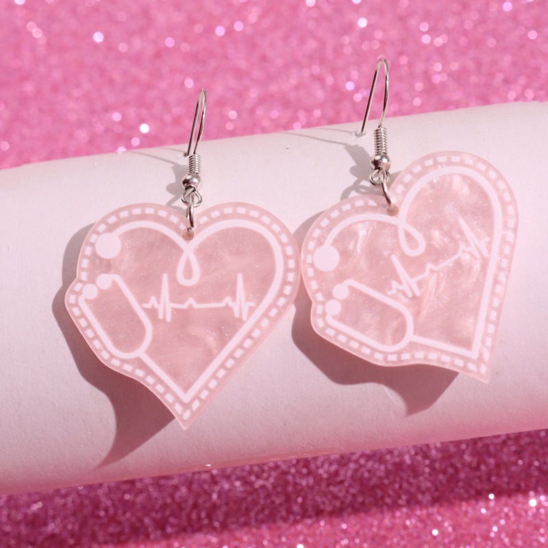 国境を越えた欧米のアクリル愛聴診器プリントイヤリングバレンタインデー個性ハート型アルファベットイヤリングジュエリー