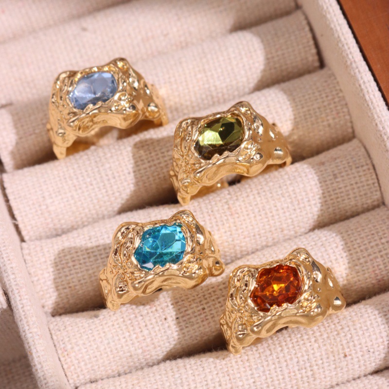 欧米の大衆デザイン多色レトロファッション指輪カラー樹脂気質指輪女性指輪セット4点セット